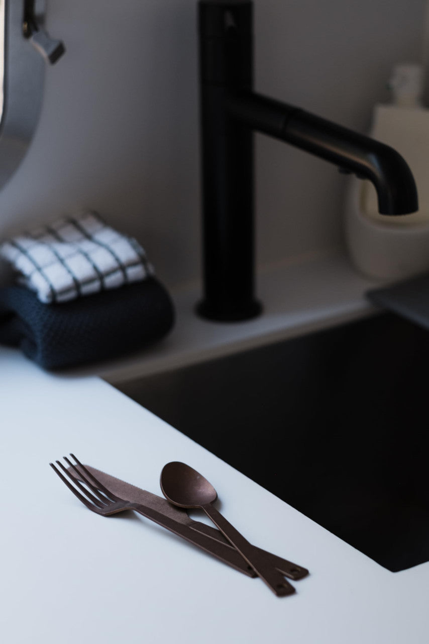 - Minimalist and Modern Silverware Set: You can use this kitchen set outdoors as a car camp set or for BBQs. Over time, the copper coating will fade to a tumbled stainless steel look and feel making for perfect kitchen accessories