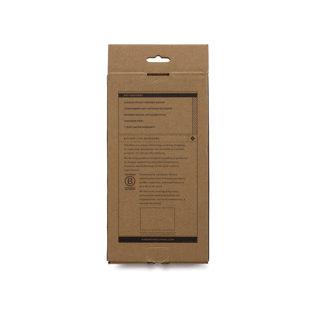 Introducing the Barebones 6 Piece Flatware Set, the perfect blend of functionality and style for your dining needs, whether at home or on your next camping trip. This essential kitchen utensil set includes 2 forks, 2 knives, and 2 soup spoons, all crafted with a food-safe copper coating that adds a touch of elegance to any table setting. Versatile and eye-catching, these copper kitchen accessories complement any kitchen aesthetic and are just as at home in your camping gear. Designed with a minimalist and modern look, this flatware set is perfect for car camping, BBQs, or everyday use. Over time, the copper coating will develop a unique tumbled stainless steel look, adding to its charm. The knives in this set feature improved teeth, making them sharp enough to handle most meats, ideal as steak knives. To preserve the beautiful copper finish, simply clean these utensils in cold water with mild detergent. Elevate your dining experience with the Barebones 6 Piece Flatware Set, where durability meets timeless design.