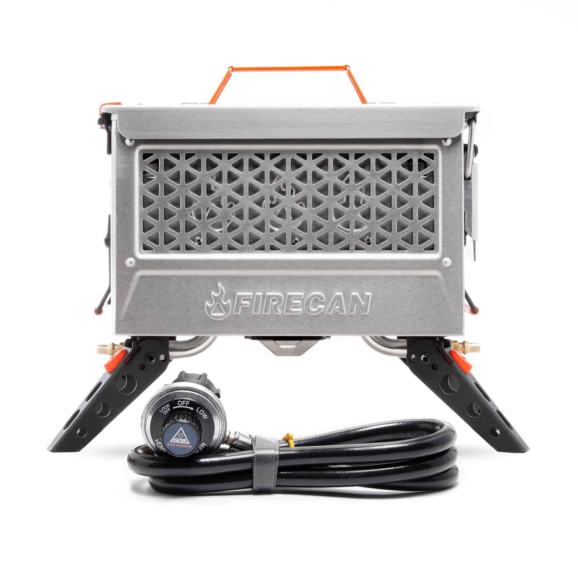 Collapsible legs and a removable lid allow the FireCan Deluxe to stow efficiently in drawers, bins, or overland rigs. Raised off the forest floor and powered by propane, it provides a wood-free solution ideal for fire-restricted areas. With the included 5 ft quick-release hose, setup is fast and tool-free—everything you need in one compact system.