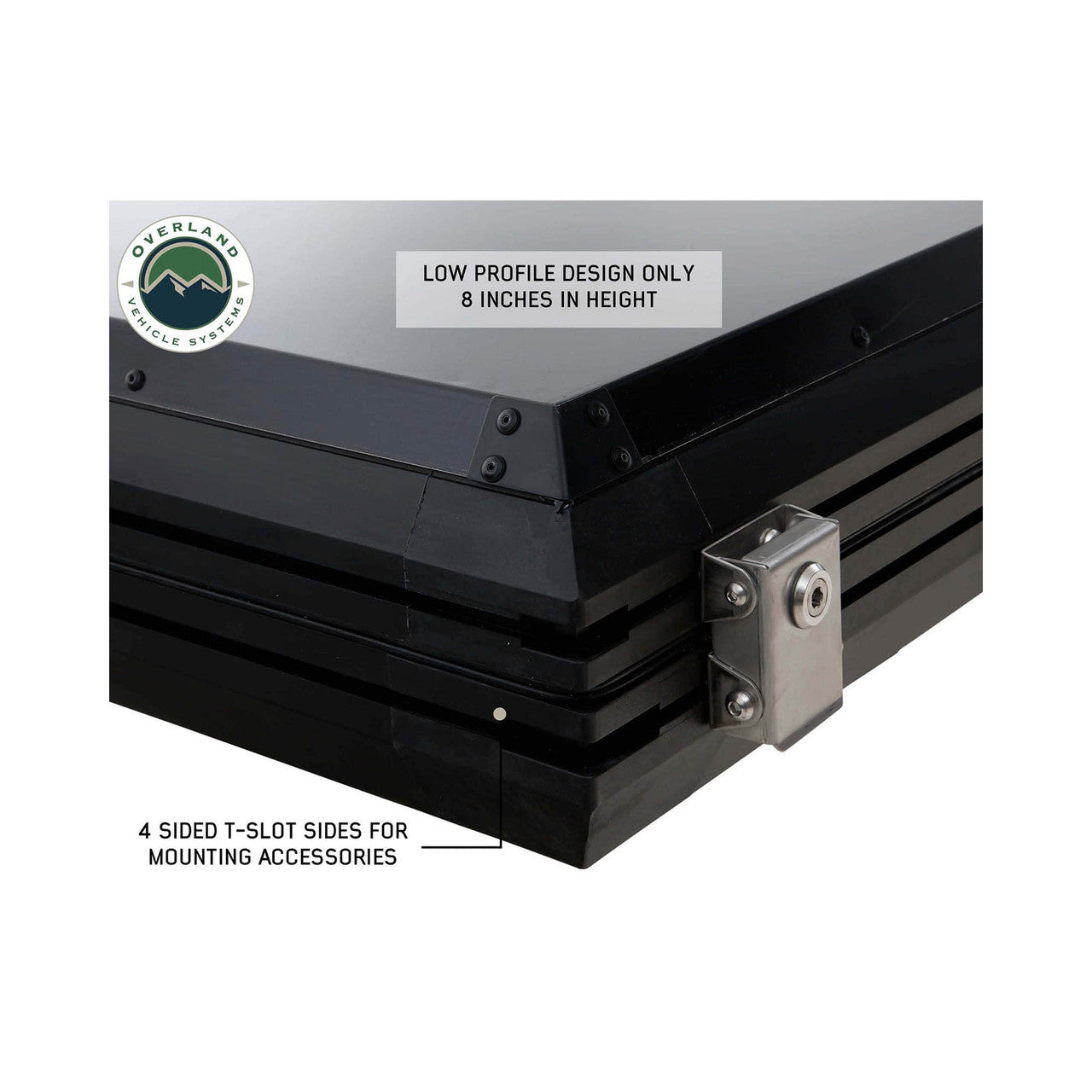 The Overland Vehicle Systems Mamba III Roof Top Tent is the best in class for its comfortable double XL 2" high density foam mattress, easy setup and teardown, and aluminum hard shell that can mount storage accessories on top. It closes to an 8" profile for the best fuel economy, and has 8 storage pockets inside and 2 shoe pockets outside. The Mamba III fits vehicles with at least a 180 lb static roof weight rating.
