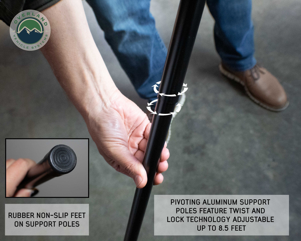 Embark on your next outdoor adventure with the Overland Vehicle Systems Nomadic 270 LT Awning, a perfect blend of convenience and durability. Designed for the driver side, this awning is a game-changer for camping enthusiasts and off-road adventurers. Unlike traditional awnings, the Nomadic 270 LT requires no poles for setup, making it a breeze to deploy. The reinforced oversize hinges and heavy-duty rafters ensure stability and longevity.